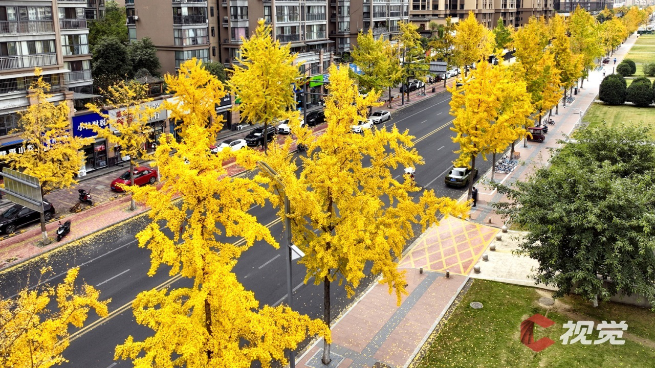 成都市青白江区城区的银杏黄了,凤祥大道两旁的银杏叶如诗如画,成为城市里一道亮丽的风景。