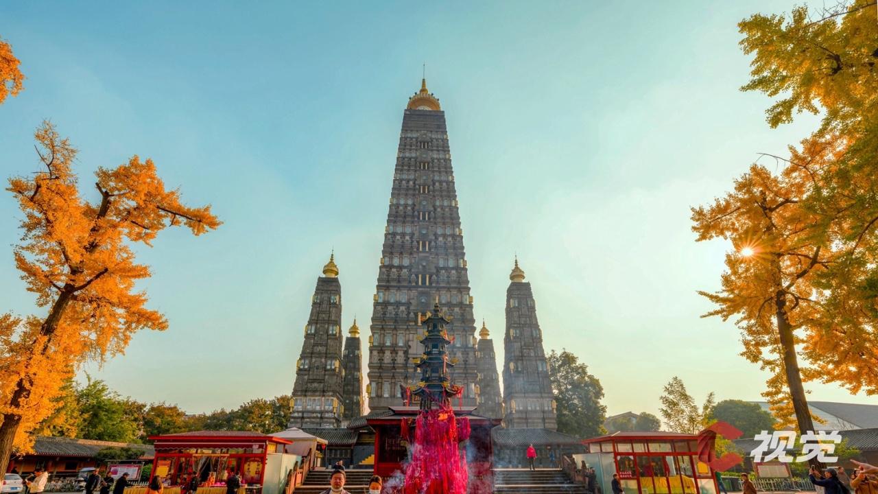 每年成都彭州市龙兴寺的银杏黄时,都会吸引不少游人前往。片片“金黄”铺展开来,忽而风起、叶落,煞是好看。