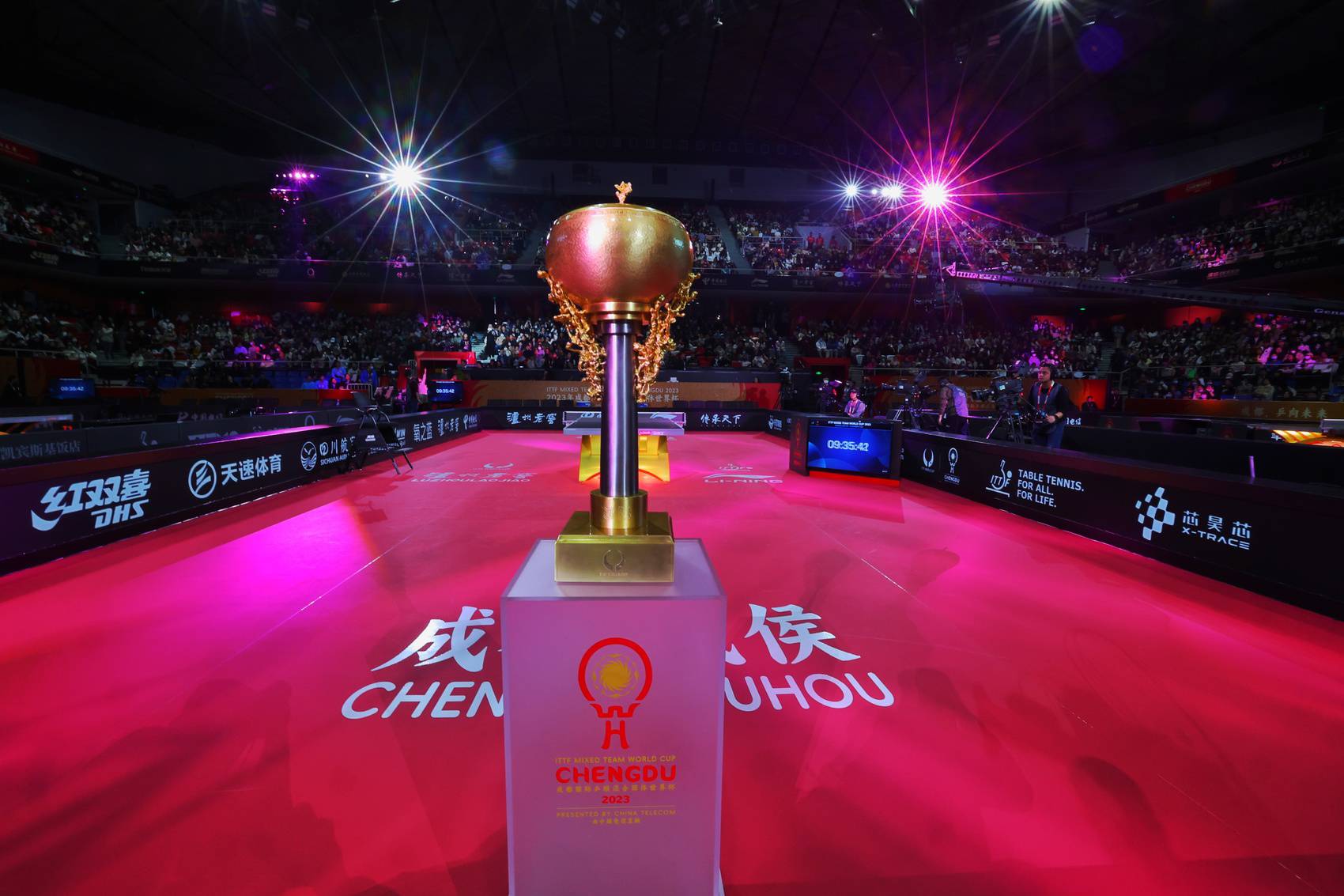 12月4日,2023年成都国际乒联混合团体世界杯在四川省体育馆拉开帷幕。在开幕式上,本届赛事的奖杯“云水托”也新鲜出炉。