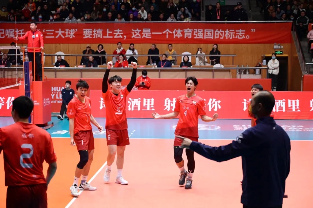 2023年四川“三大球”城市联赛(排球项目)男子组共19支球队参赛,成都男排一队、遂宁鼎杰明男排进入到最后的冠军争夺当中。在双方首回合较量中,首回合利用主场优势以3:0取得比赛胜利的成都男排一队,次回合客场作战。只要他们能够击败对手,就能成功卫冕。第二回合比赛开始之后,成都男排一队士气很盛,以25:21、25:19拿下,率先拿到冠军点。第三局,遂宁鼎杰明男排背水一战,以28:26扳回一局。第四局比赛,成都男排一队开局即发起猛烈攻势,最终以25:21获得比赛胜利。以两回合总比分2:0击败对手,夺得2023年四川“三大球”城市联赛(排球项目)成功卫冕。成都男排二队、绵阳男子排球一队获得季军,成都男排一队刘汪洋获得最有价值球员奖。