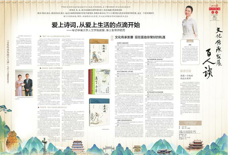文化传承发展百人谈⑫丨爱上诗词 从爱上生活的点滴开始——专访中南大学人文学院教授、博士生导师杨雨(点击标题阅读)