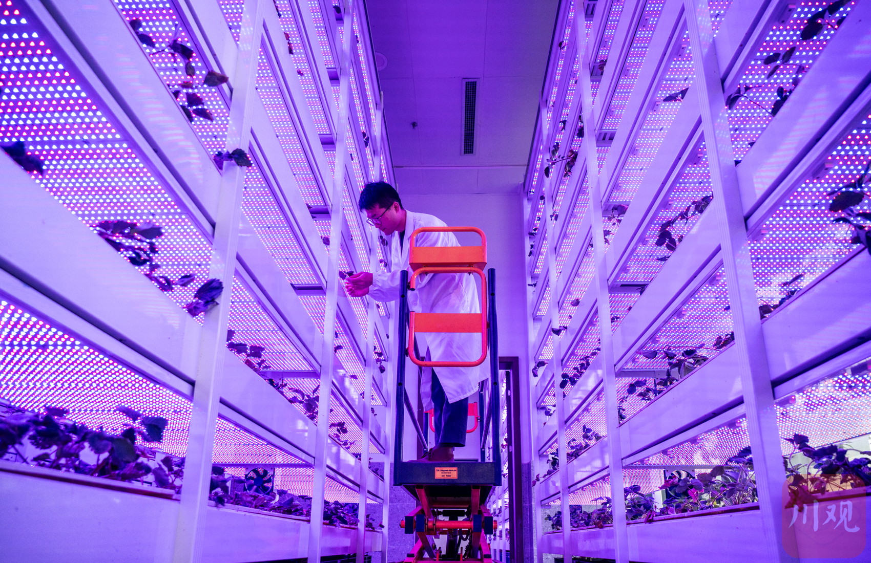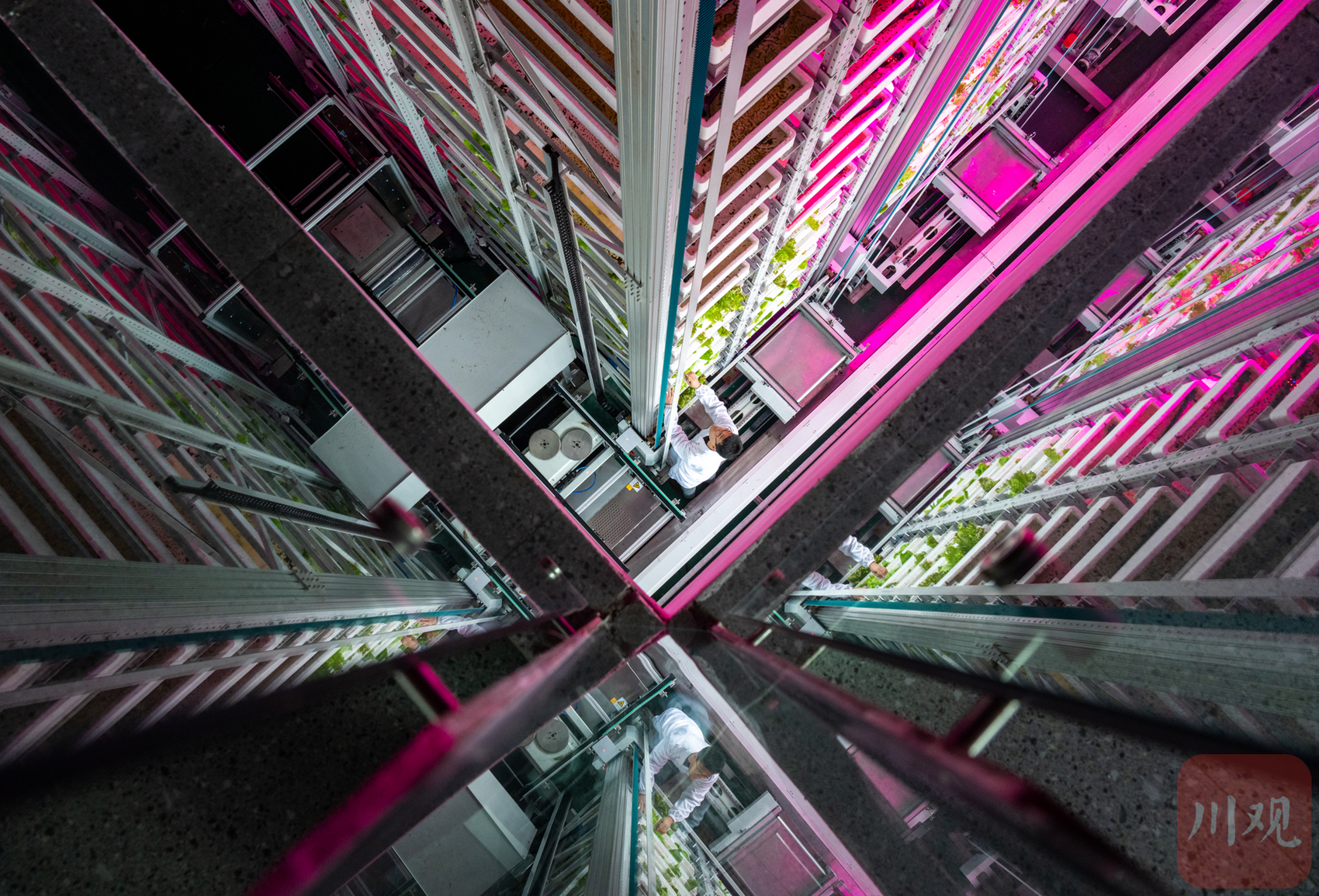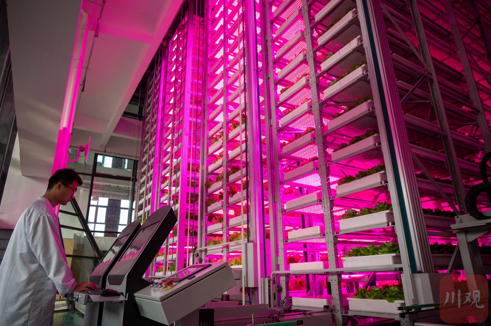 这是天府新区的成都国家现代农业产业科技创新中心,无人化垂直植物工厂就在其中。