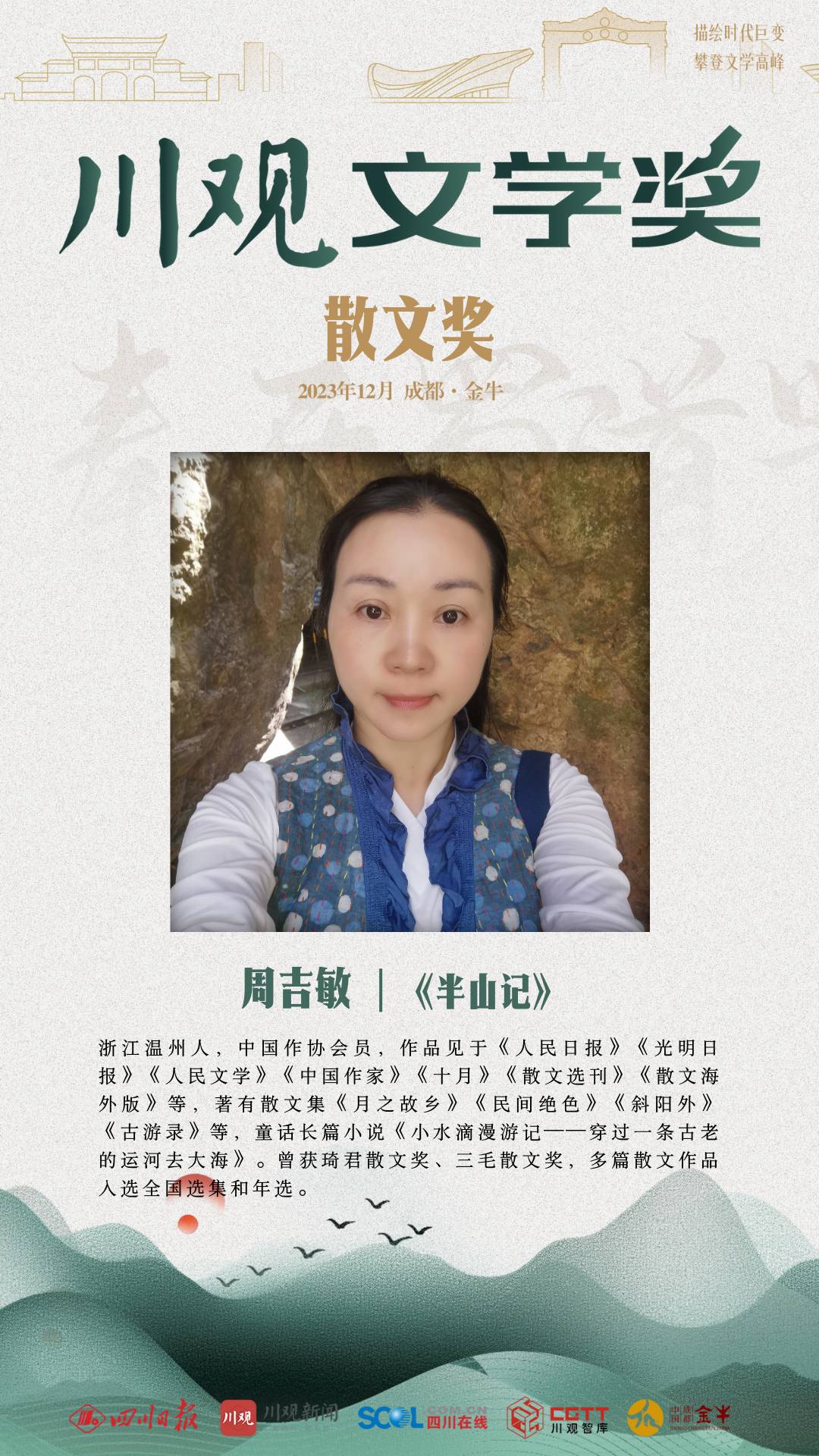 周吉敏近几年的散文创作令人瞩目,其文大气、节制,有趣味,多涉及人文地理与历史往事。与众不同的是,周吉敏的内化能力极强,往往在行文中纳古今于笔端,容历史与现实于一体,读来酣畅,引人有所思。《半山记》写南方之山川幽秘之所,温州与台州之间的括苍山脉,古来文气浓郁,常在文学作品中出现,且名字也诗意盎然。周吉敏写半山的青苔流水、岩石树影、天空流云等,也写人在其中的心态与感受。她的文字轻盈、内敛、精准,将半山之形、色、质等,书写得清奇古雅,自然安静,又具有人文与烟火气息。