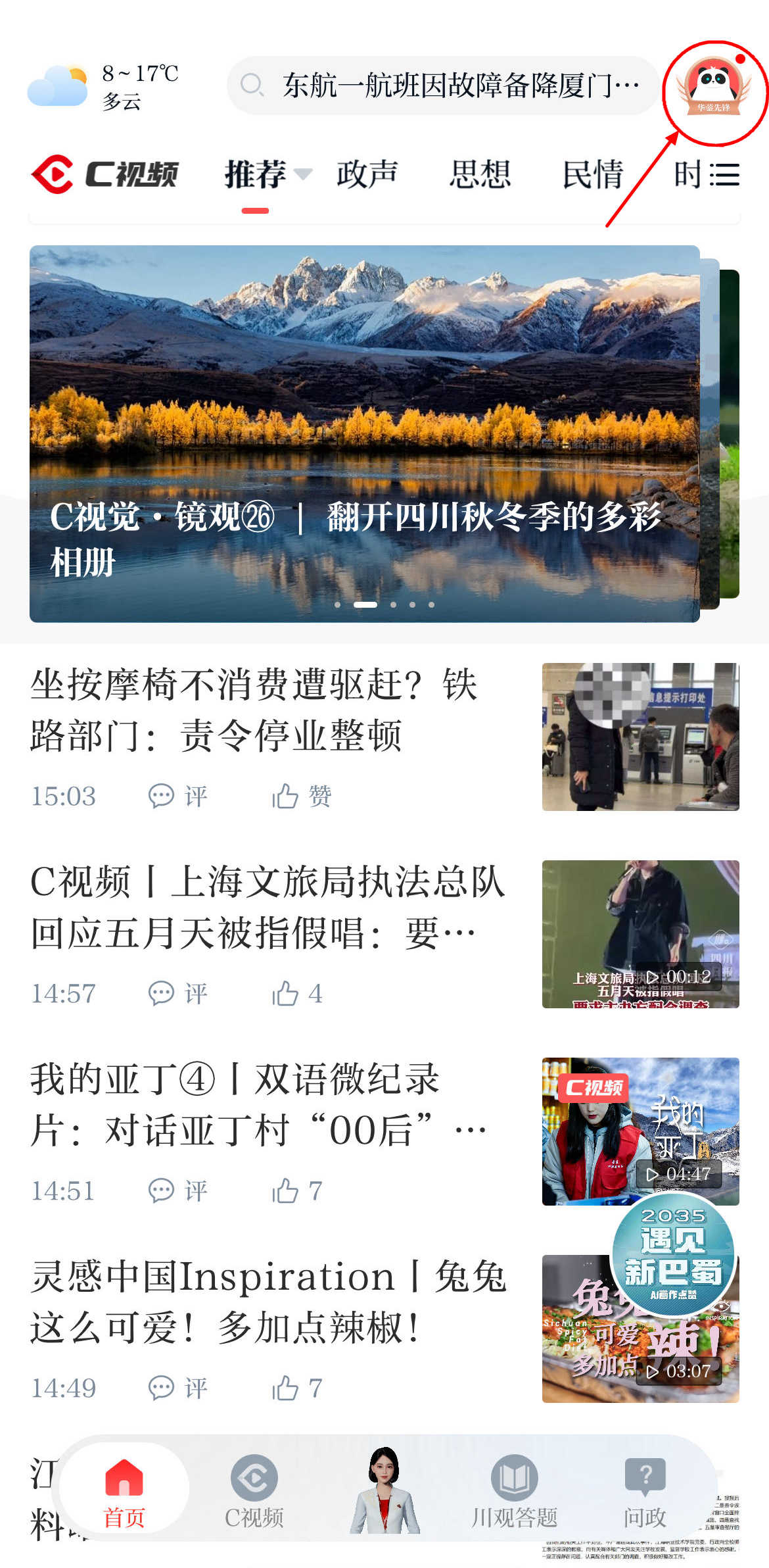 点击川观新闻首页“我的”版块