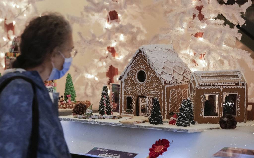 12月5日,在加拿大温哥华,参观者观看展出的姜饼屋作品。