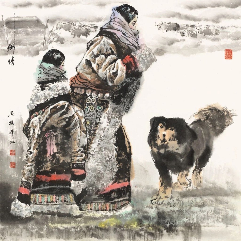 乡情(中国画),尺寸:69cm×69cm,尼玛泽仁 作