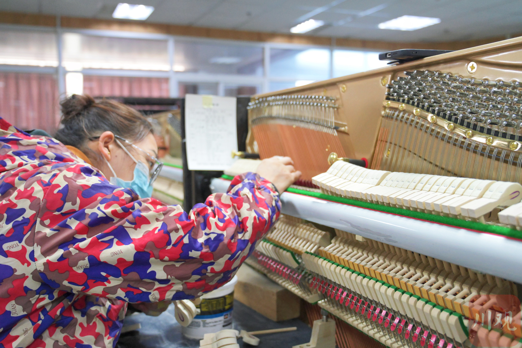 钢琴装配车间里,工人正在进行胶榔头工序。李志强 摄