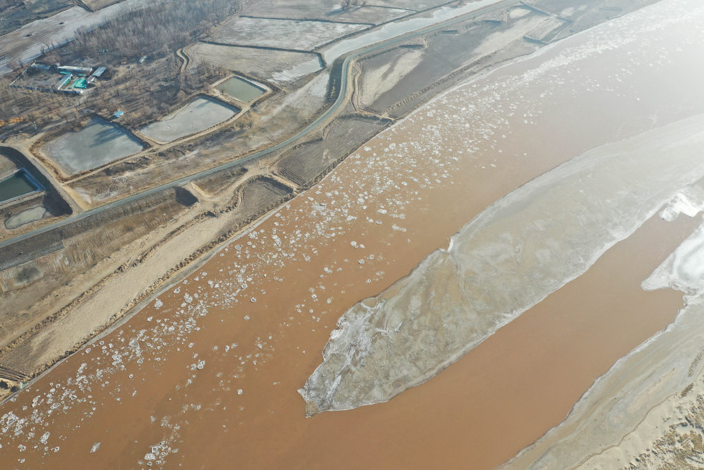 近日,受冷空气影响,黄河内蒙古达拉特旗段出现流凌。