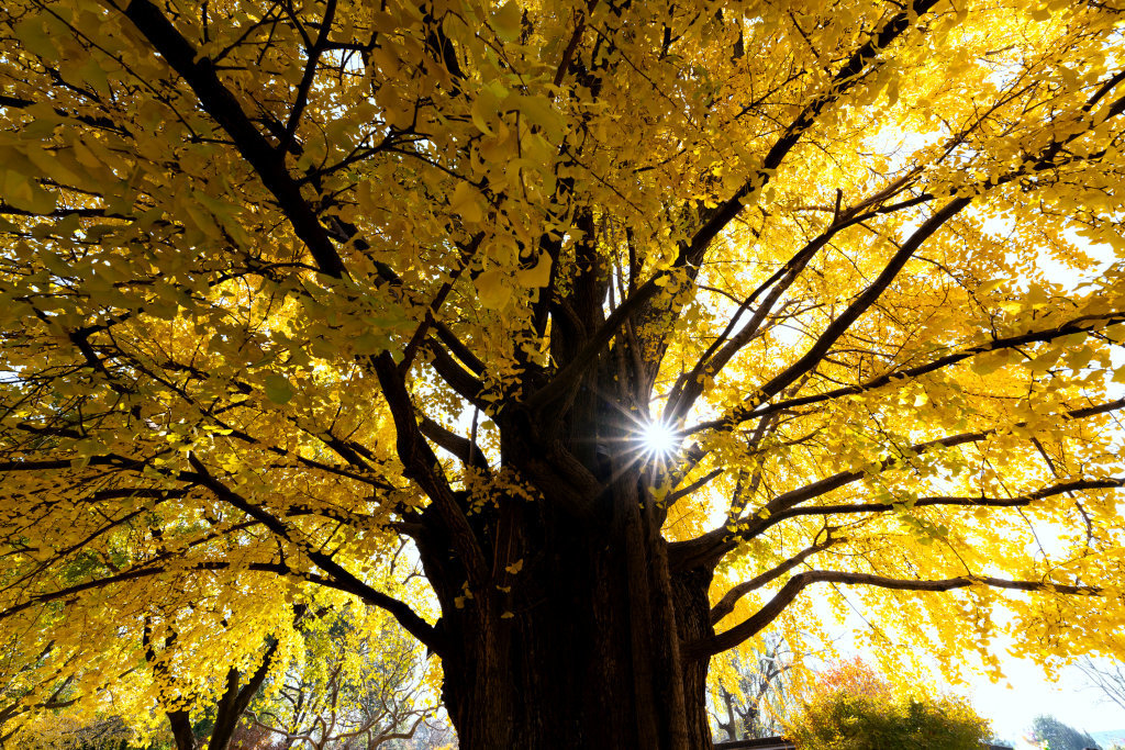 这棵古老的银杏树迄今1200多年,目前进入最佳观赏期。