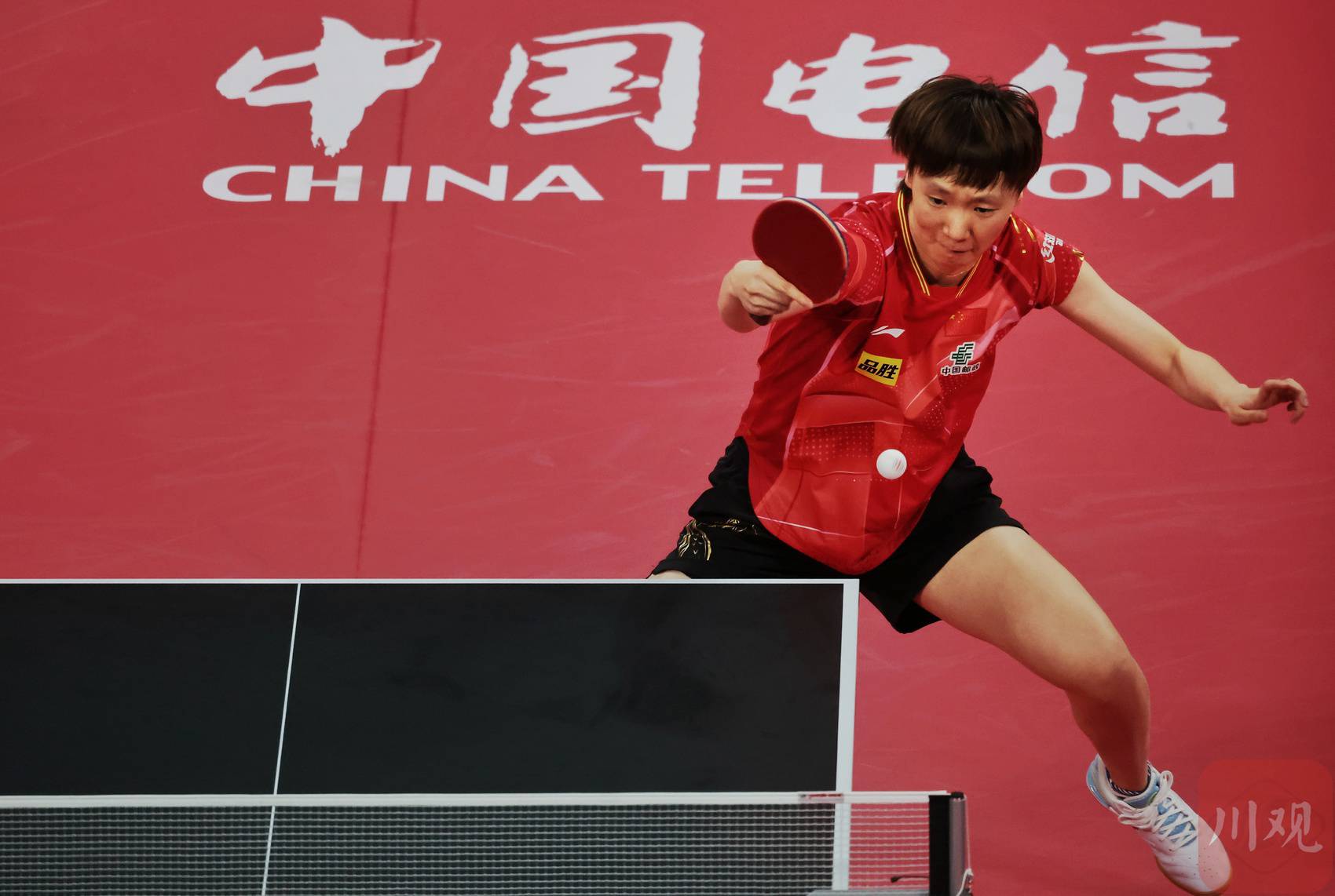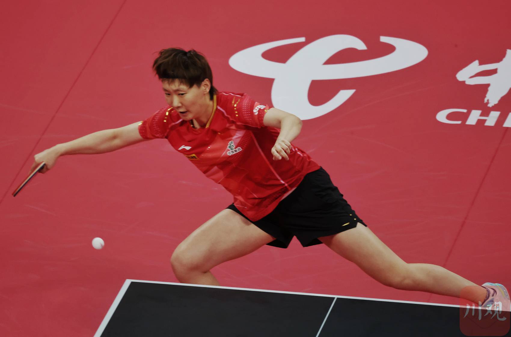 王楚钦/孙颖莎(红衣)组合在比赛中
