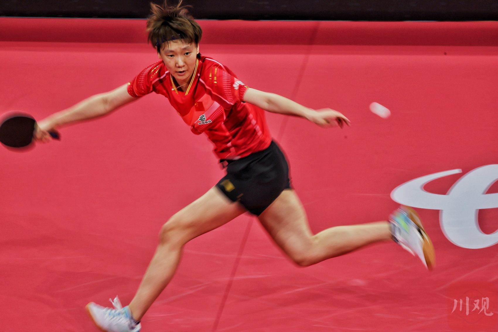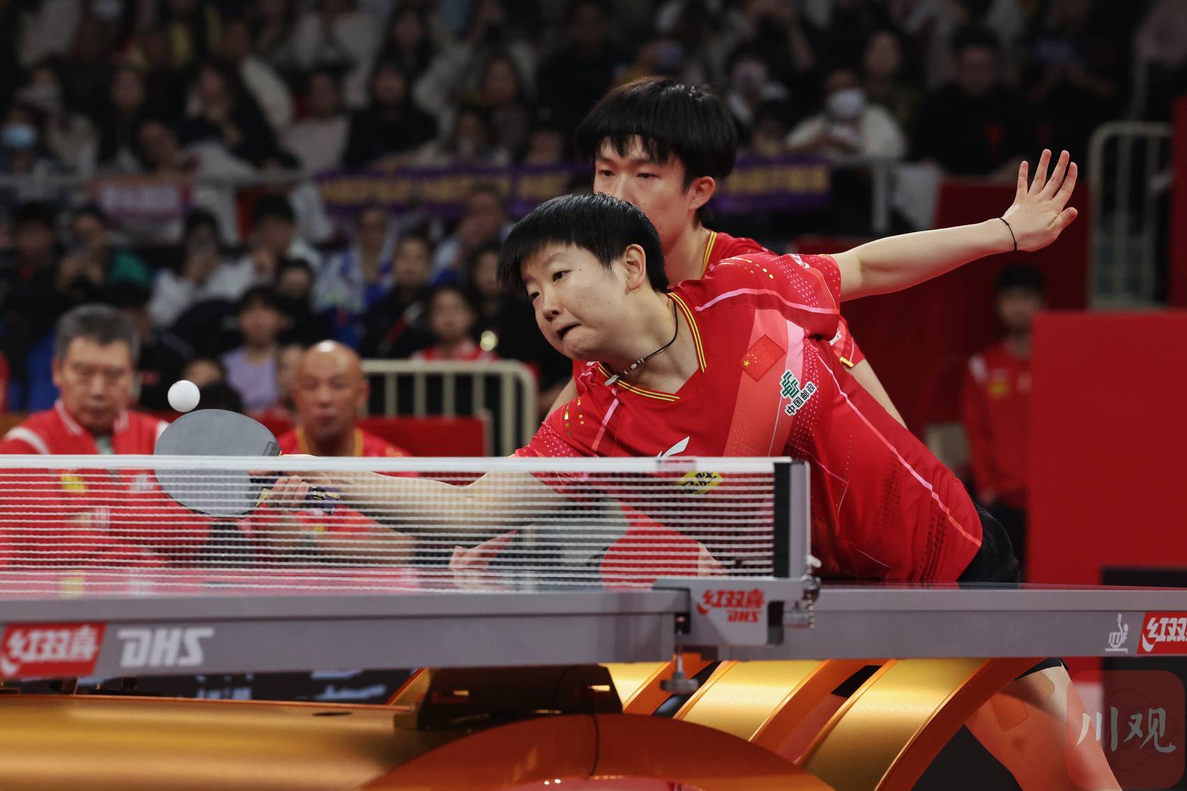 王楚钦/孙颖莎(红衣)在比赛中