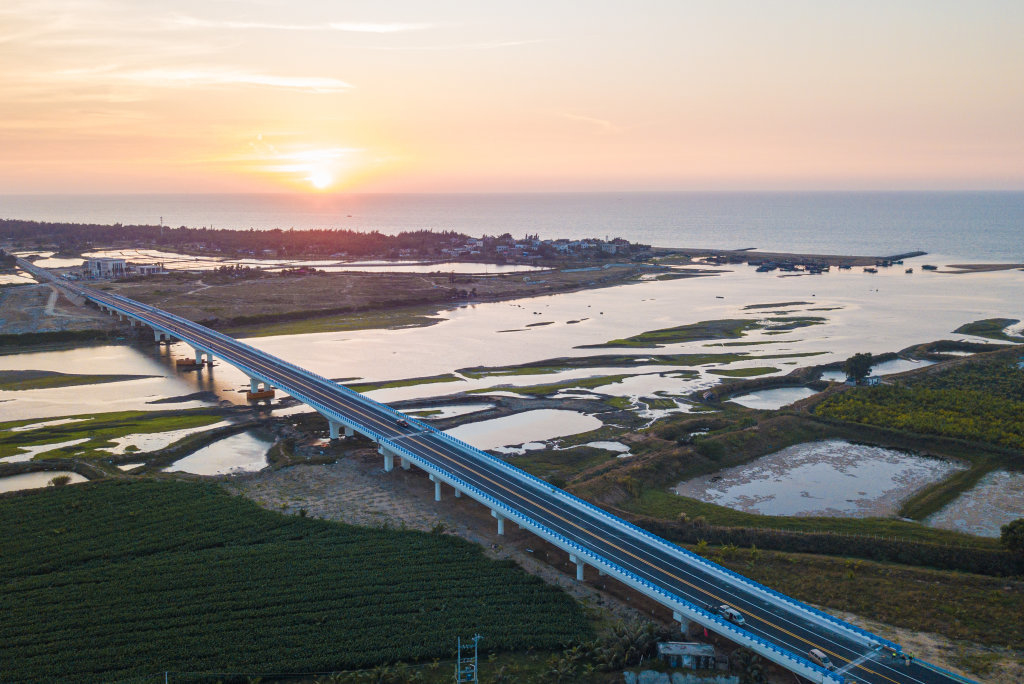 12月9日拍摄的海南环岛旅游公路东方段感城港大桥(无人机照片)。