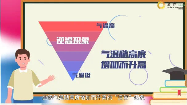 在低层大气中,高度越高、温度越低,这时候暖空气上升、冷空气下沉,形成的空气对流有利于近地面污染物的向上扩散,不易累积。