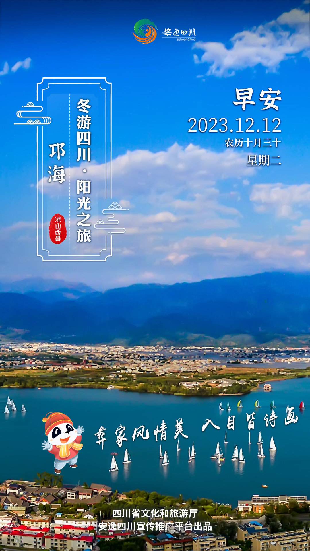 12月12日,星期二。今日安逸四川日历海报“冬游四川”之旅走进位于凉山西昌邛海湿地景区,感受彝家风情美,入目皆诗画。