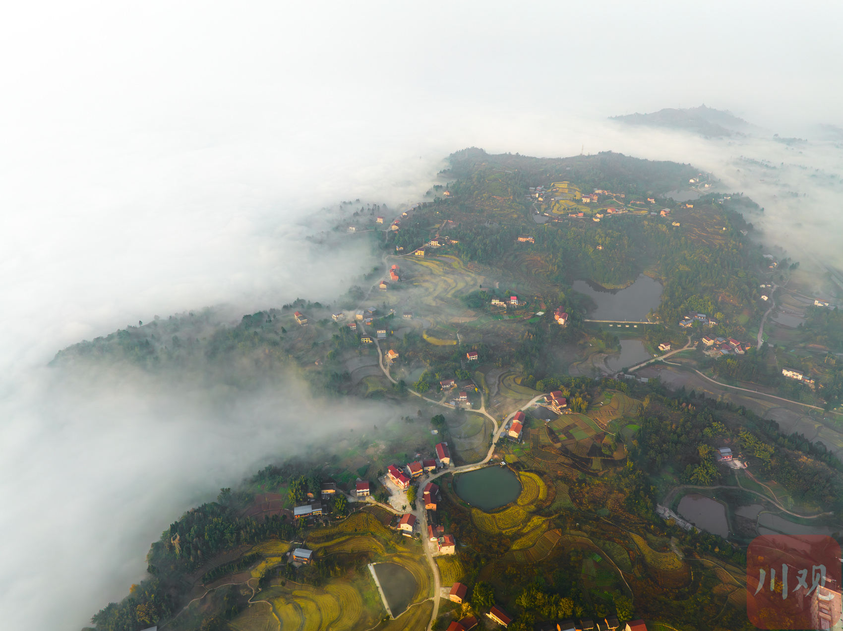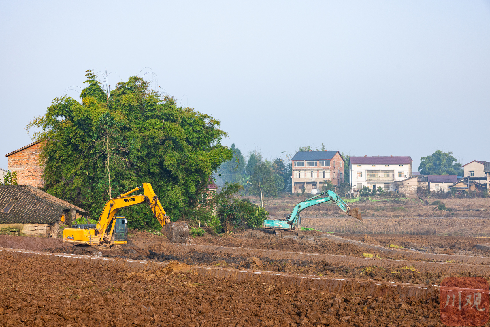 冬日清晨,广安市前锋区仁和村云雾缭绕,如同一幅仙境中的水彩画卷。几辆挖掘机在田地中忙碌作业,将村中大量大小不一的农田按照田成块、地成形的标准进行整治,将“小田”变“大田”。