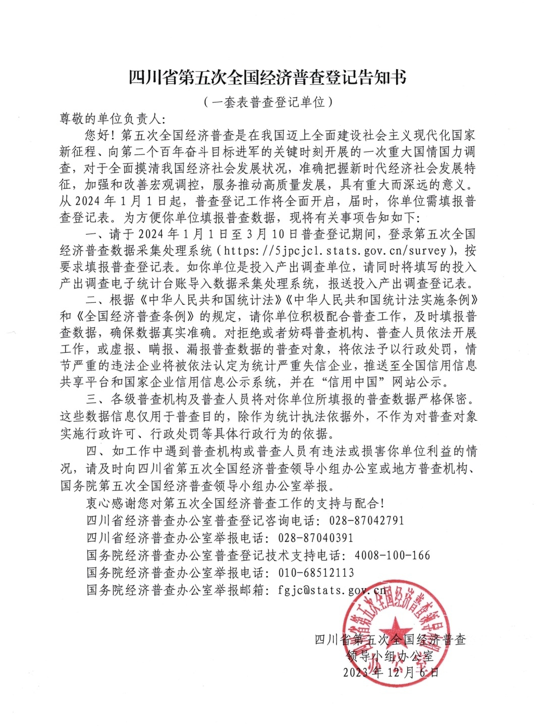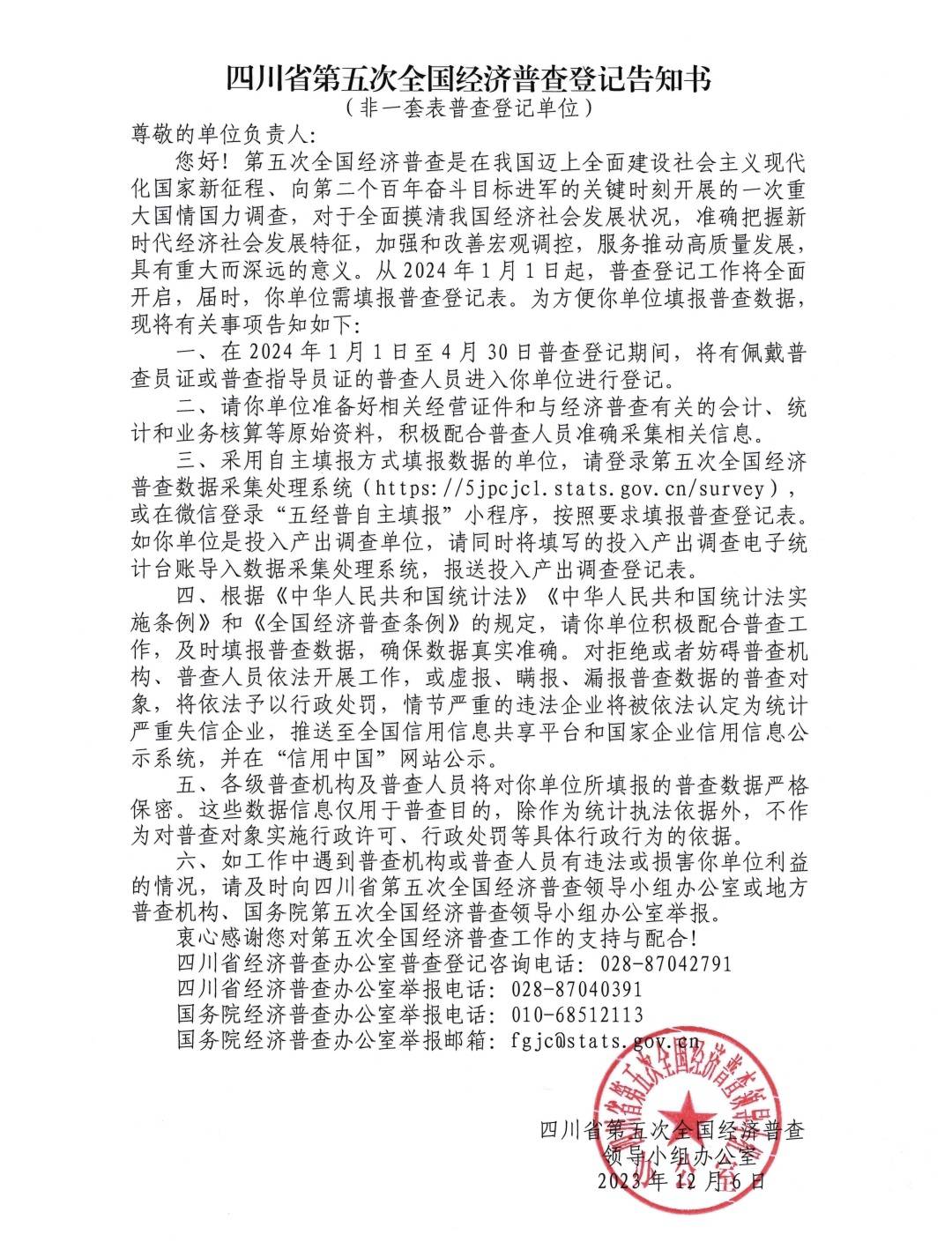 2023年,我国正式开展第五次全国经济普查(以下简称“五经普”)。“五经普”是一项重大国情国力调查,是对国民经济的一次高质量“体检”。四川作为全国经济大省,正全力以赴开展“五经普”,推动普查成果更好服务全省高质量发展。从2024年1月1日起,“五经普”将全面开启普查登记工作。