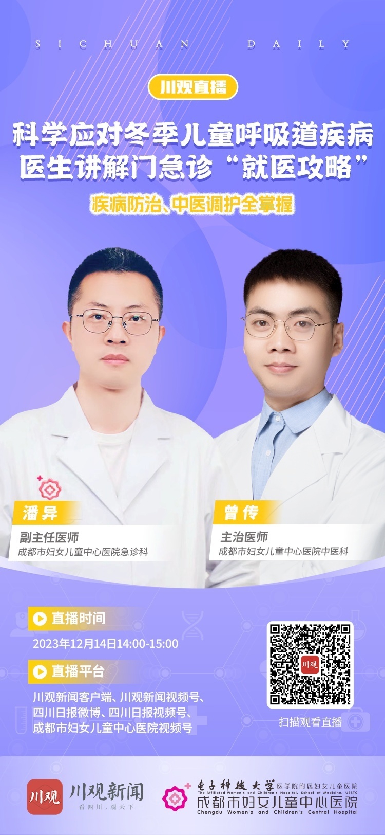 12月14日,川观新闻携手成都市妇女儿童中心医院开展健康科普直播,就门急诊科学就医、疾病防治、中医调养等内容为家长们支招答疑,帮助家长们更好应对儿童呼吸道传染性疾病。