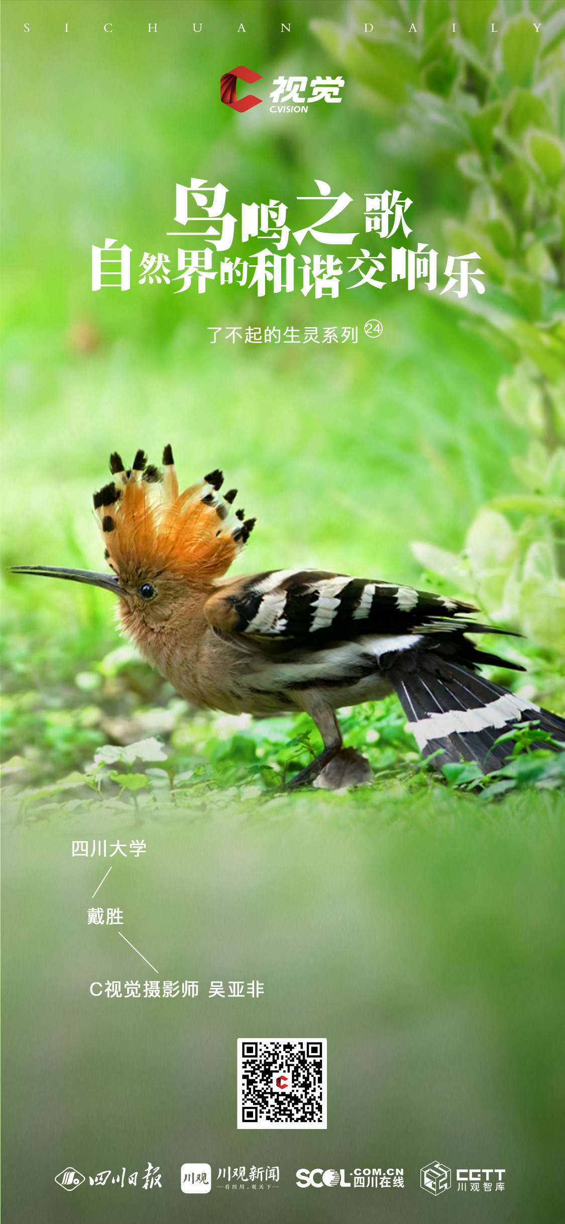 2016年,C视觉摄影师吴亚非在四川大学记录了戴胜。这种鸟类常见单独或成对分散于山区或平原的开阔地、耕地、果园等地面觅食。