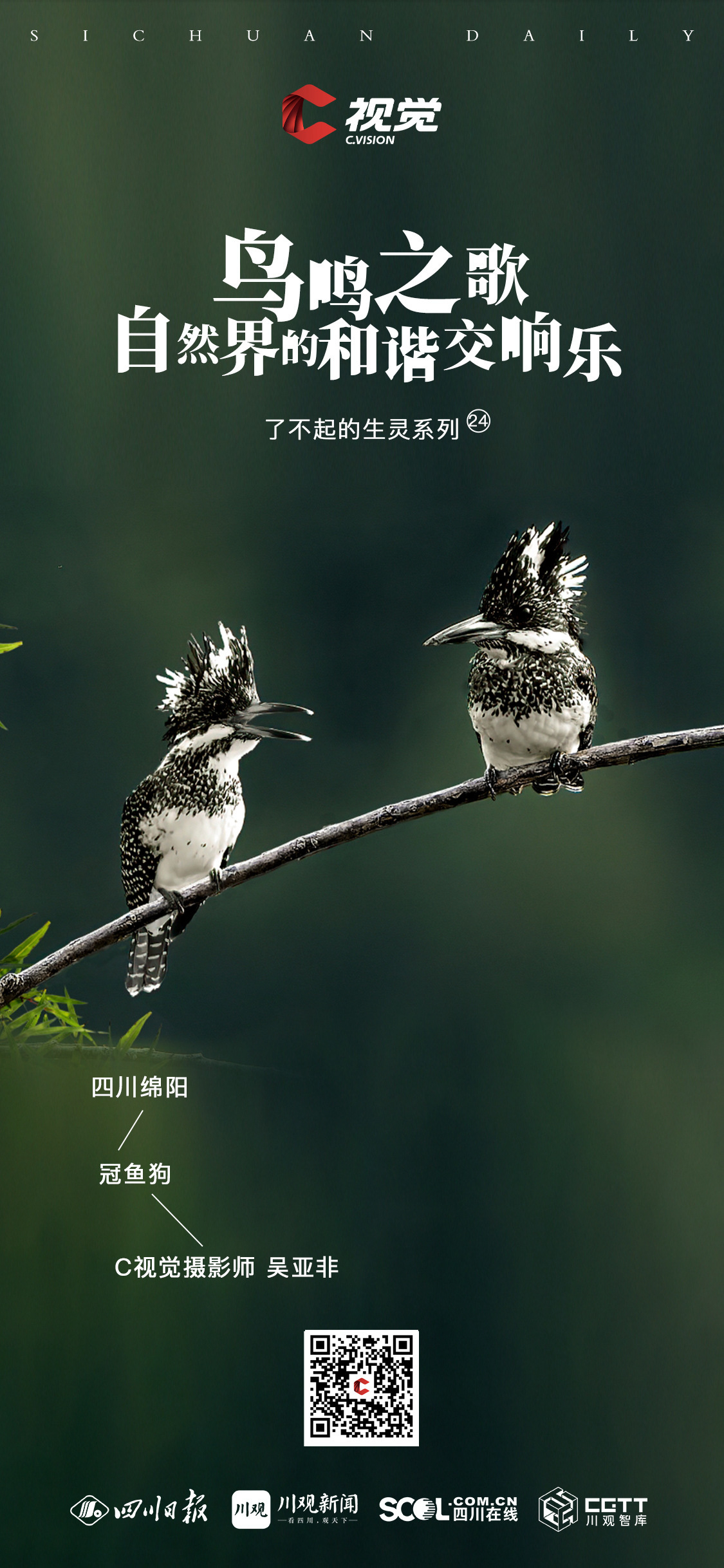 2023年11月,C视觉摄影师吴亚非在绵阳记录了冠鱼狗。这种鸟类主要栖息于山麓、小山、灌丛或疏林清澈河流及溪流。