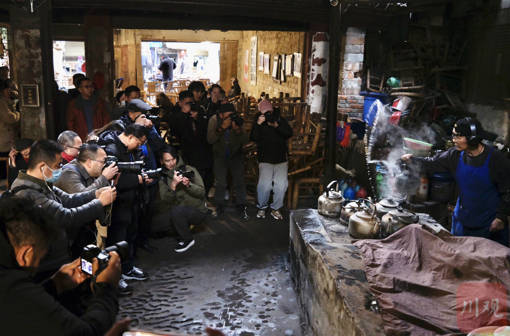 12月15日下午,由四川日报、四川省新闻摄影学会、C视觉影像数据库联合重庆日报、重庆市新闻摄影学会、视觉重庆开展的“唱好双城记 共建经济圈——2023年成渝地区双城经济圈建设主题影像创作暨培训交流活动”创作采风团走进成都市双流区彭镇百年老茶馆,在悠闲时光中,在茶香袅袅间,邂逅“最成都”的市井生活。