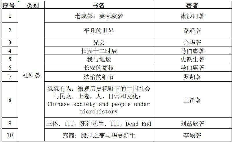 从入榜的社科类书单来看,除了成都本土作家流沙河,近年来热度颇高的作家、网络UP主也受到成都读者的追捧。无论是中国政法大学教授、知名普法“段子手”罗翔,还是因为幽默言语吸粉的余华,以及讨论度颇高的刘慈欣等人的图书均在榜单占据一席之地。此外,自从《古董局中局》《三国机密》播出以来,马伯庸作品成为影视改编的新宠。这种影视化作品的走红,也反过来带动不少读者来“追书”。在此次社科类书单,记者看见,马伯庸就有《长安的荔枝》《长安十二时辰》两部作品上榜,也是本次书单中少有的一位作家两部作品同时上榜。