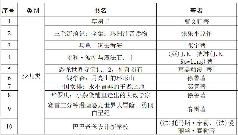 国际安徒生奖得主曹文轩的作品被译成英文、法文、德文、日文等多种语言,受到海内外读者广泛赞誉。在此次发布的少儿类读物,曹文轩依然占据榜首,受到不少少年儿童的喜爱。除了童话故事类作品,记者发现诸如《钱学森:月亮上的环形山》等这类带有科普性质的图书,也在榜单中占据重要位置。