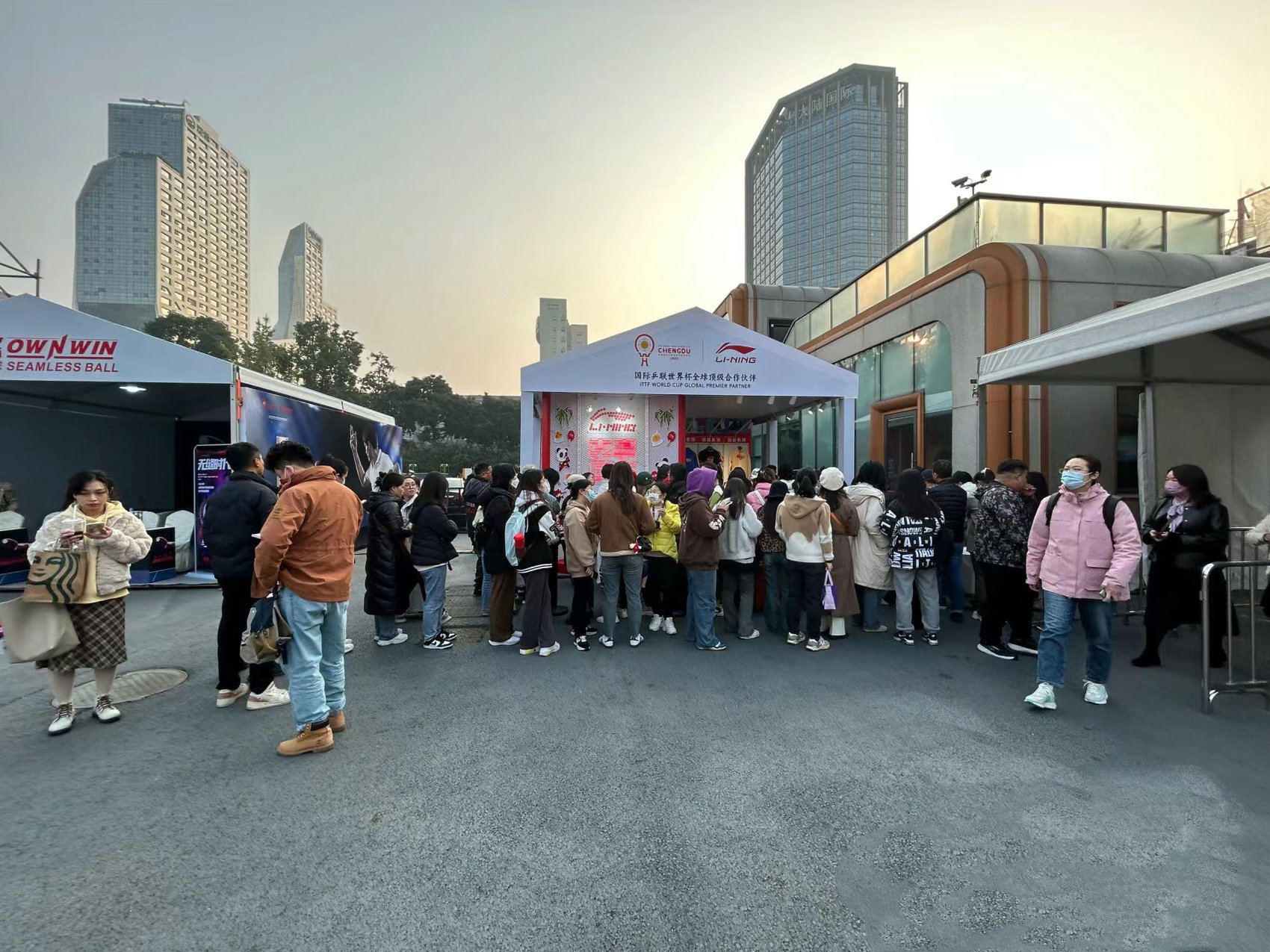 12月7日,四川省体育馆南门的观众入口,等待入场的观众已经排起了长队,顾客挤满了特许商店,来支持中国队的球迷手中的应援物料让人眼花缭乱。12月8日,一条关于国乒在成都混合团体世界杯比赛的短视频在微信短视频平台爆火,浏览超过1000万+,点赞近7万,转发近3万,收藏10万+,评论近6000条。这只是线上线下的火爆场景的一瞥。成都混合团体世界杯带来的热潮肉眼可见,比赛球票非常难抢。
