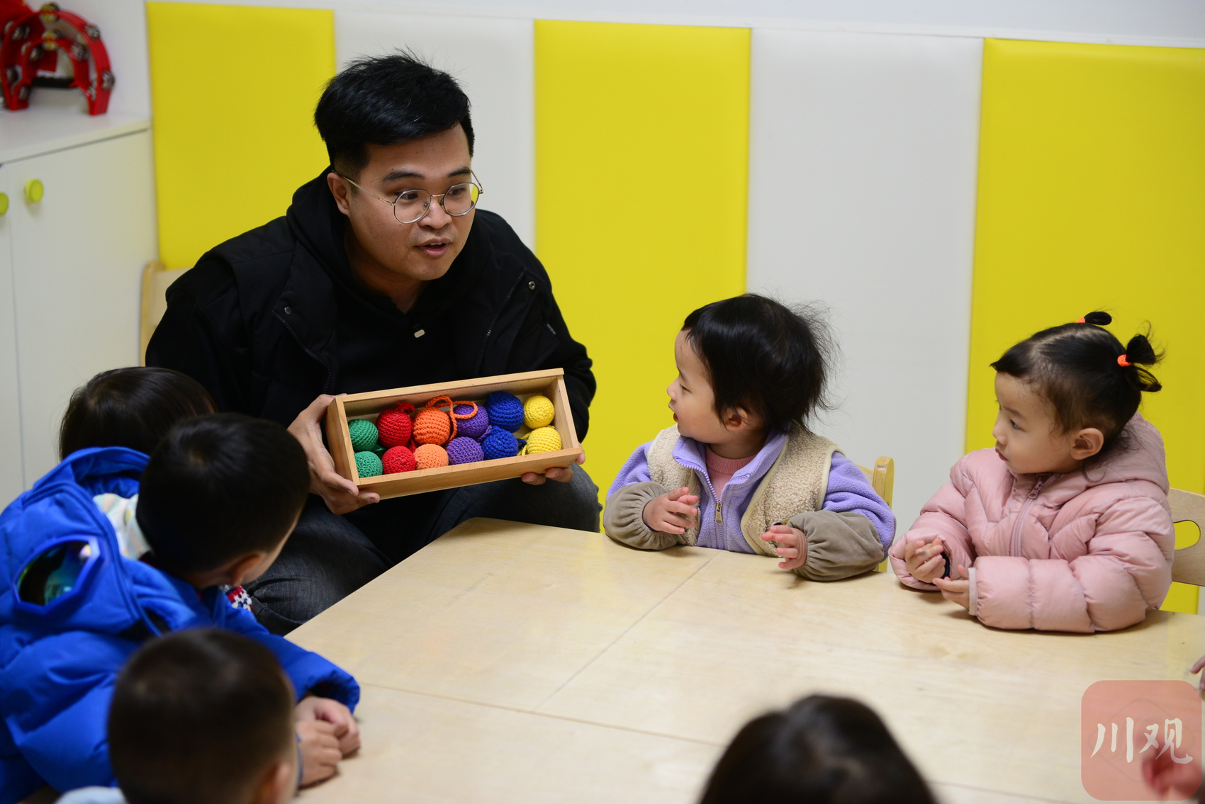 “1、2、3、4……小朋友们,告诉廖老师盒子里面一共有多少个球呢?”近日,在成都Bee婴幼之家,一位来自台湾新竹的“成都女婿”——廖家兴正耐心地为8个小朋友带来一场有趣的彩色球互动课。