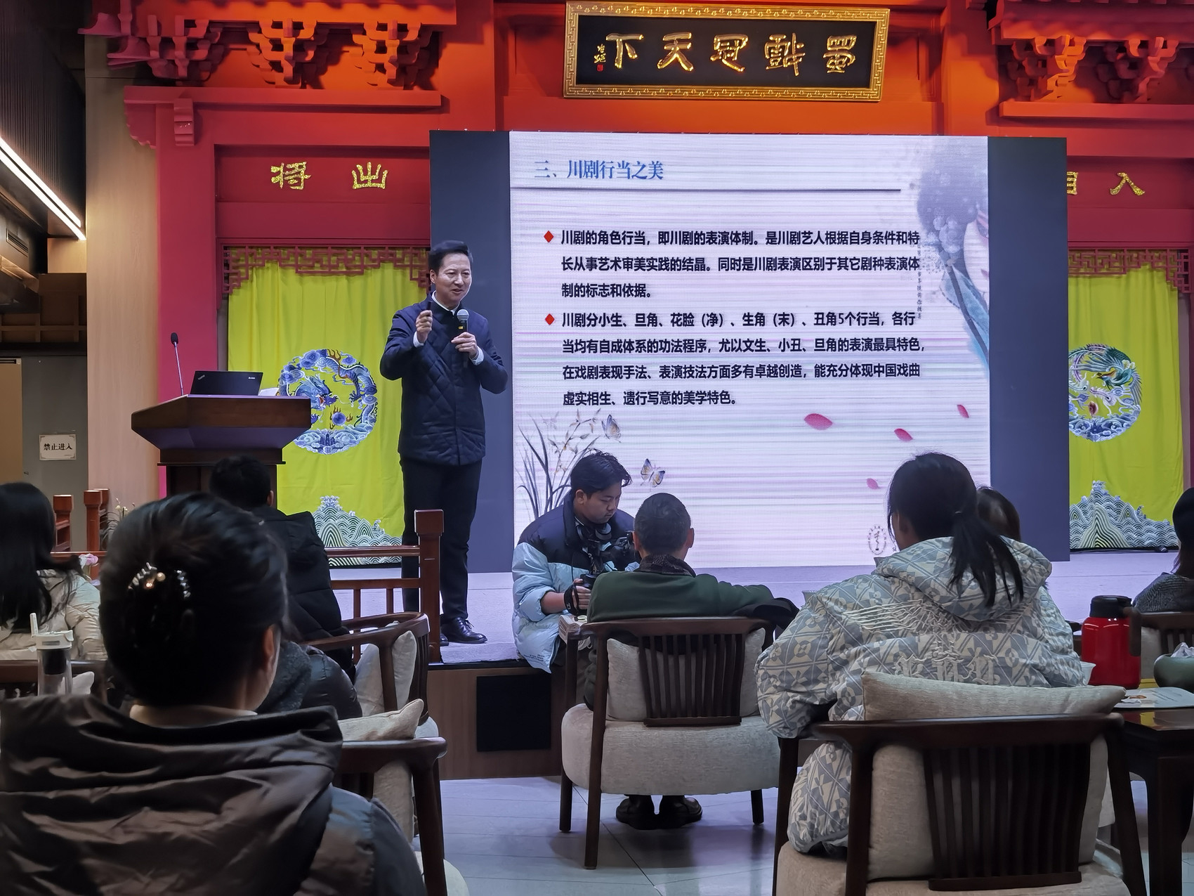 12月17日,由四川省文化和旅游厅指导,四川艺术职业学院、四川戏曲名家肖德美工作室主办,四川省青年艺术团承办的“以戏载道·传承古老川剧青春之美——肖德美百场讲座分享”活动在成都“川剧戏窝子”悦来茶园举行,中国戏曲梅花奖得主崔光丽、刘谊、王超等川剧界名家,以及省内各艺术院团和学校代表、青少年学生等齐聚现场,共同感受中国传统戏曲魅力。