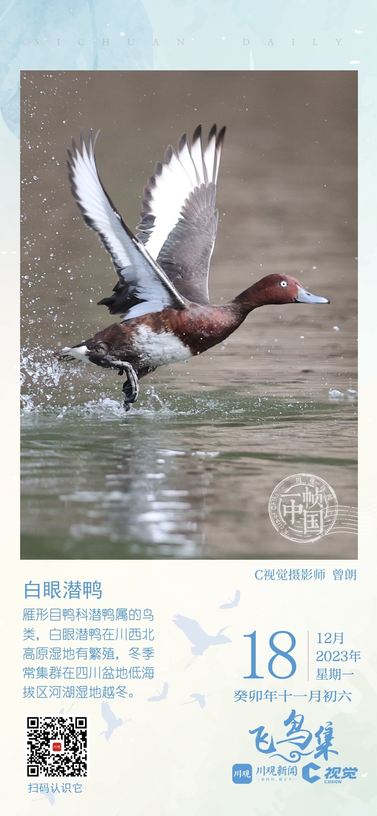 C视觉、川观新闻“一帧中国”专栏联合成都观鸟会发起“‘飞鸟集’影像全球招募计划”,征集冬候鸟在四川境内越冬的精彩影像图片,诚邀广大摄影爱好者投稿,展示你镜头记录飞羽之美,定格四川冬候鸟的美丽瞬间。