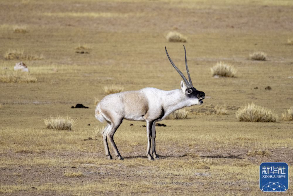 ↑ 在羌塘国家级自然保护区,一只发情的雄性藏羚羊在“呼唤”雌性(12月16日摄)。新华社记者 姜帆 摄