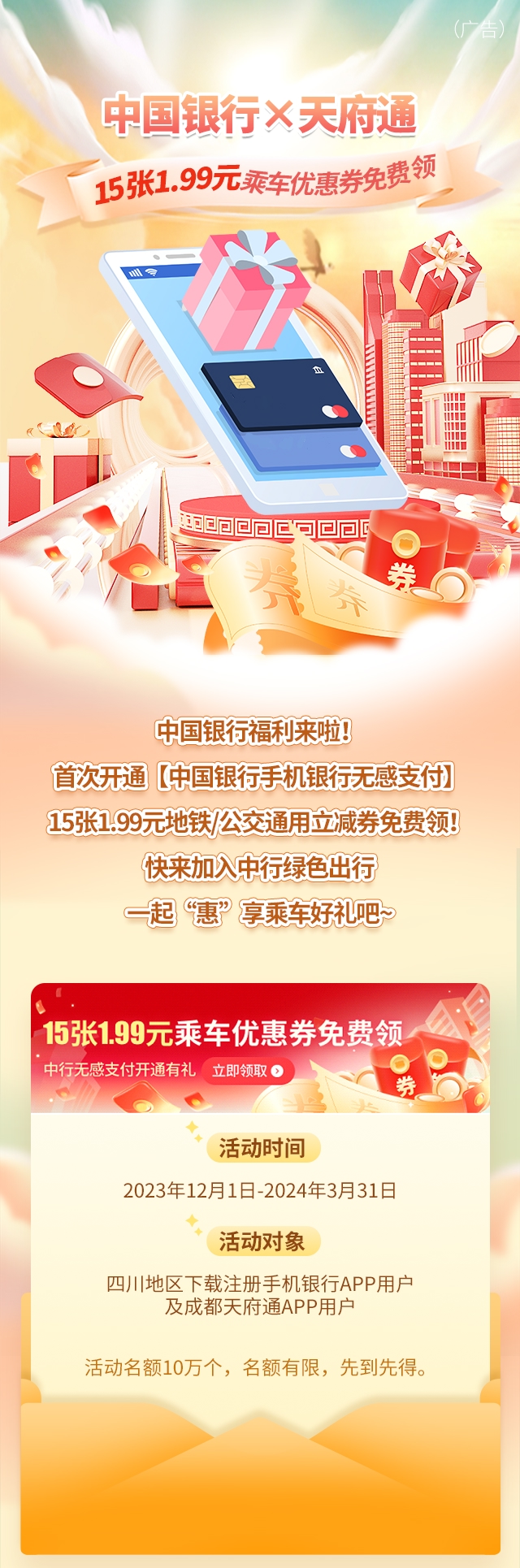 加入绿色出行,开通中国银行手机无感支付,出行通用券免费领(二)