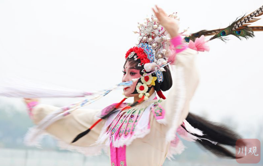 12月14日,川剧表演者在东安湖体育公园湖畔进行表演。四川省新闻摄影学会 杨树 摄