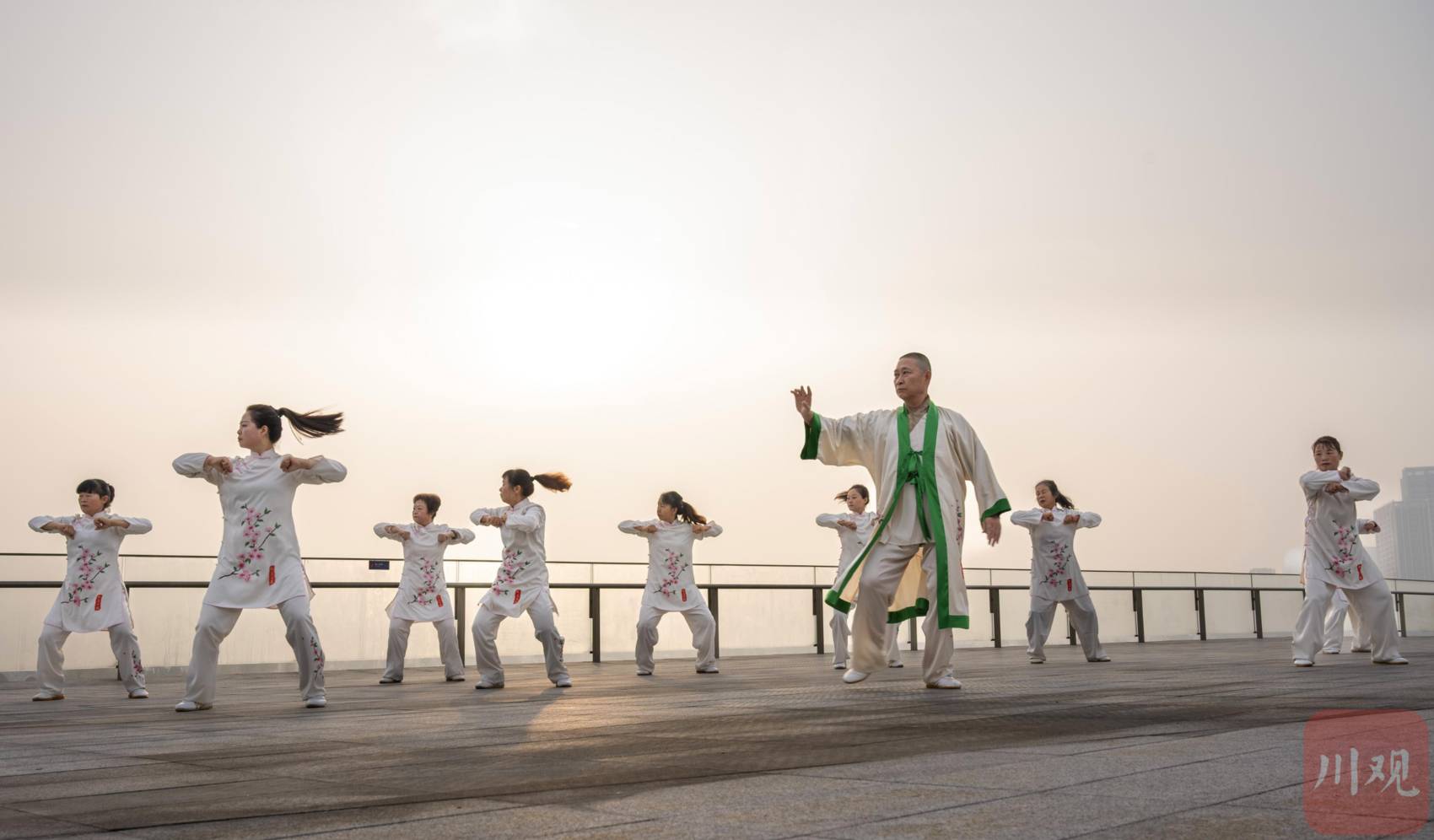 12月14日,太极拳爱好者在成都市东安湖体育公园进行太极拳表演。四川省新闻摄影学会 曾晓辉 摄