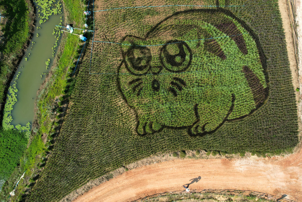 一名当地艺术家在稻田里创作了这些生动的“猫”图案。
