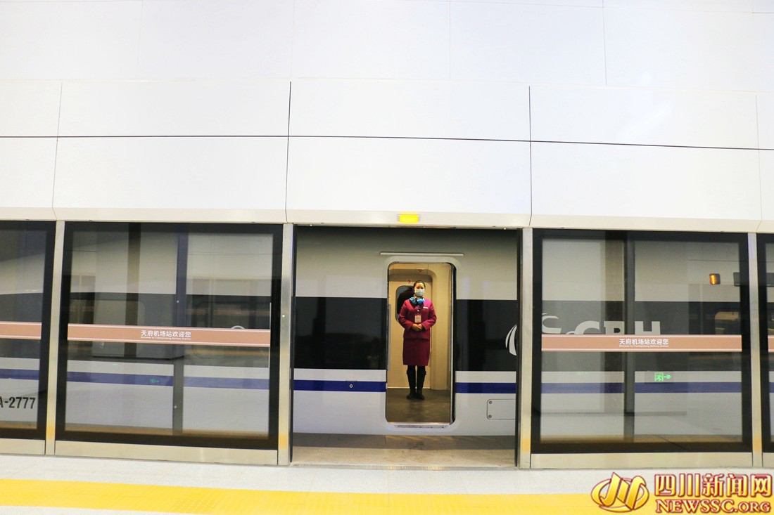 四川新闻网-首屏新闻成都12月19日讯(记者 谢川霞 周琼 许雨珂 摄影报道)12月19日8点30分,成宜高铁首次试乘动车组55301次列车从成都东站驶出。8点55分,仅用25分钟到达天府机场站。