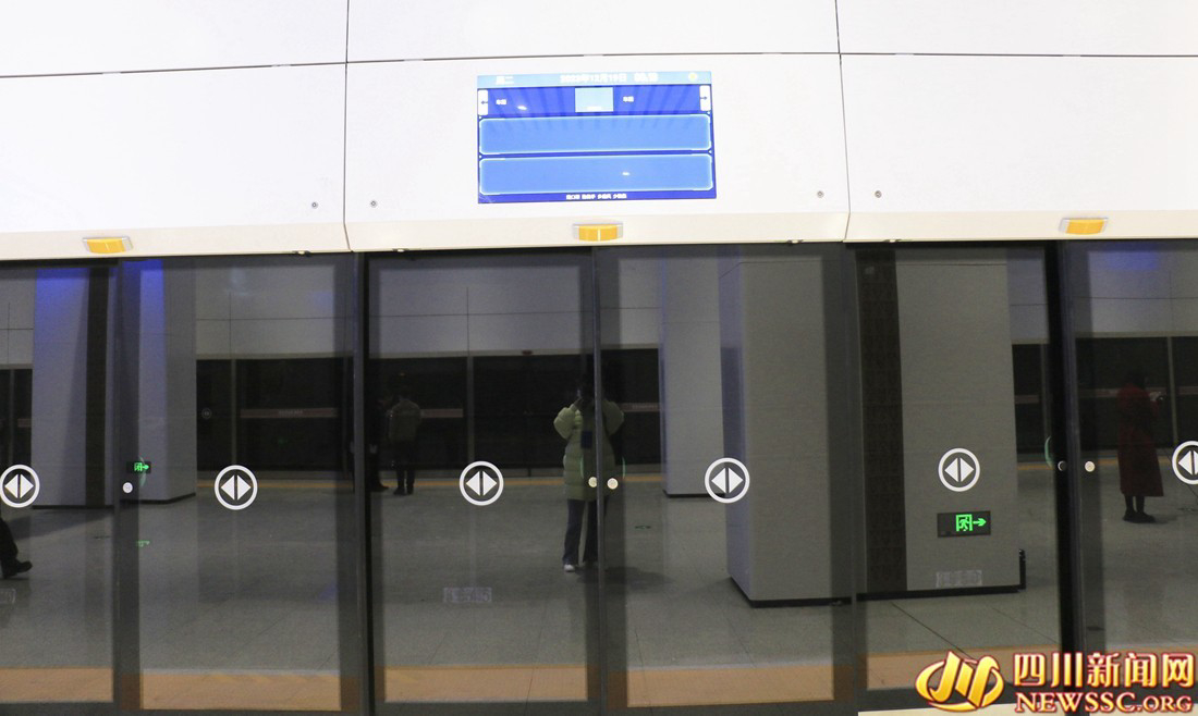 记者还发现与地铁站台相似的还有站台门上安装了显示屏。“可以接入了车站旅服信息系统,屏幕上会实时显示候车信息、政府公告、公益广告等讯息。在火灾、地震等紧急情况下,站台门会自动打开,并播放紧急疏散和防灾等图文信息,引导旅客疏散、避险,具有防灾、减灾作用。”