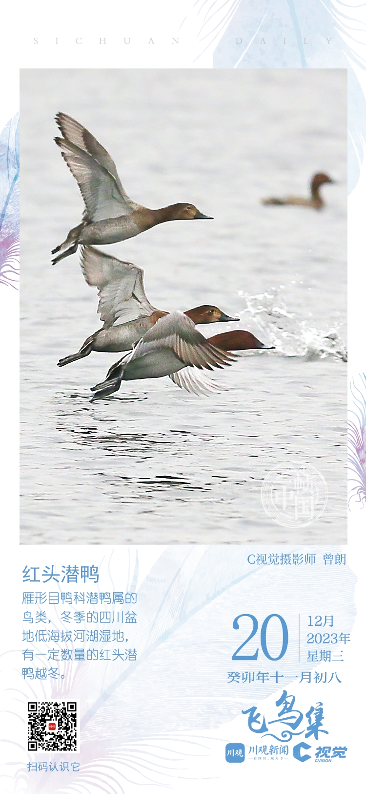 C视觉、川观新闻“一帧中国”专栏联合成都观鸟会发起“‘飞鸟集’影像全球招募计划”,征集冬候鸟在四川境内越冬的精彩影像图片,诚邀广大摄影爱好者投稿,展示你镜头记录飞羽之美,定格四川冬候鸟的美丽瞬间。