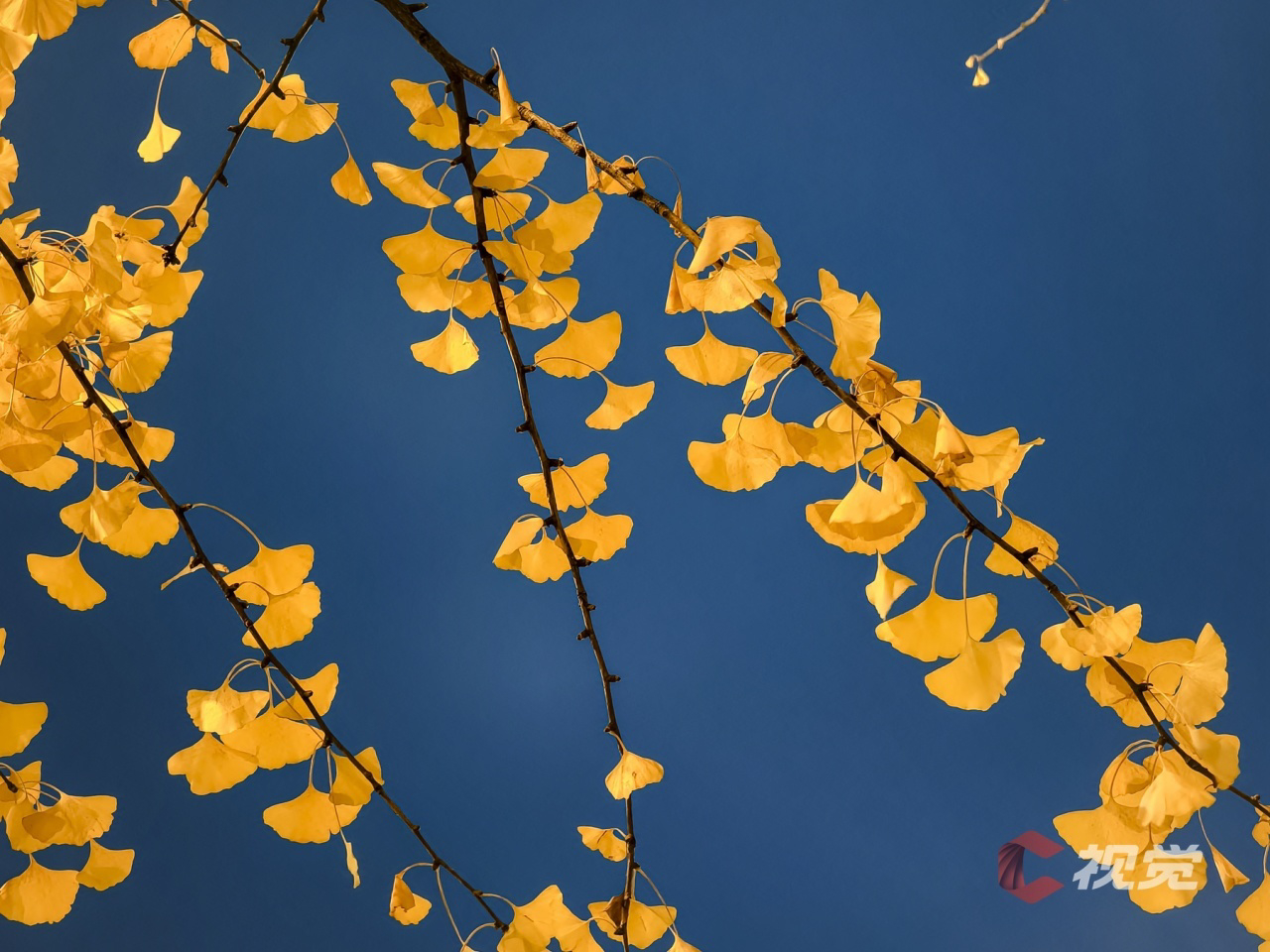 在路灯照射下,金色银杏显得更加静美动人。