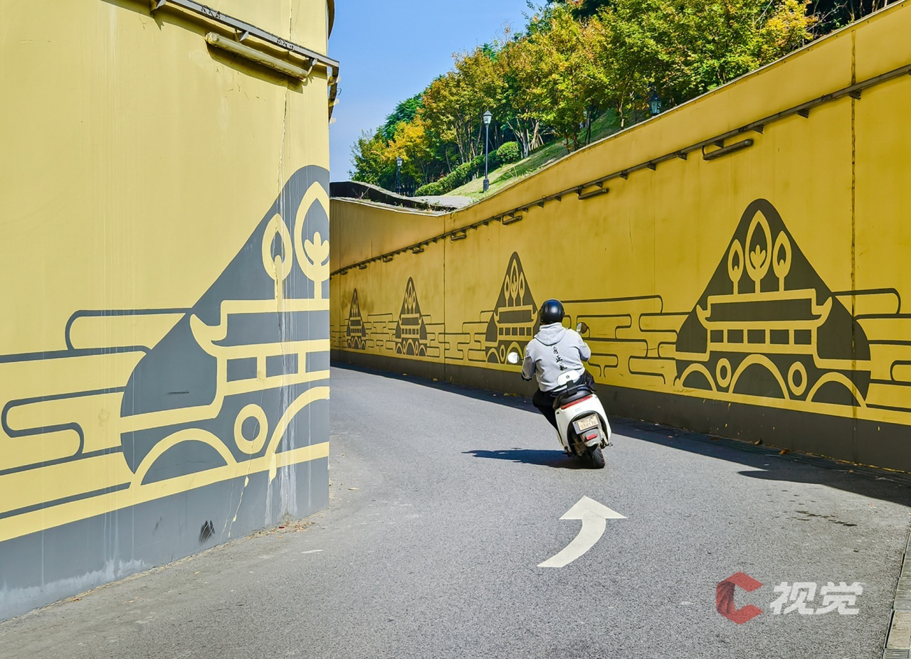 三环路附近自行车道旁的艺术墙画。