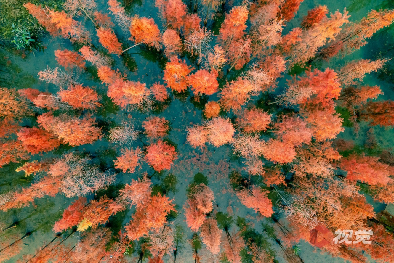 初冬三圣乡白鹭湾的水杉林,宛如一幅“水上油画”。