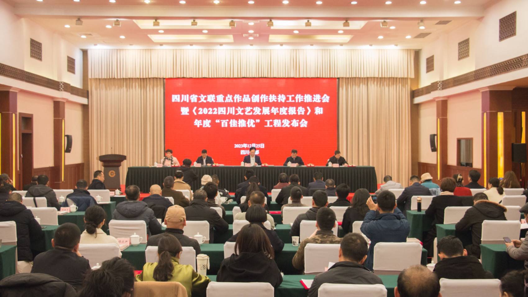 12月25日,省文联重点作品创作扶持工作推进会暨《2022四川文艺发展年度报告》和年度“百佳推优”工程发布会在成都召开。省文联党组成员、省社科院相关负责同志以及文联系统代表120余人参加会议。