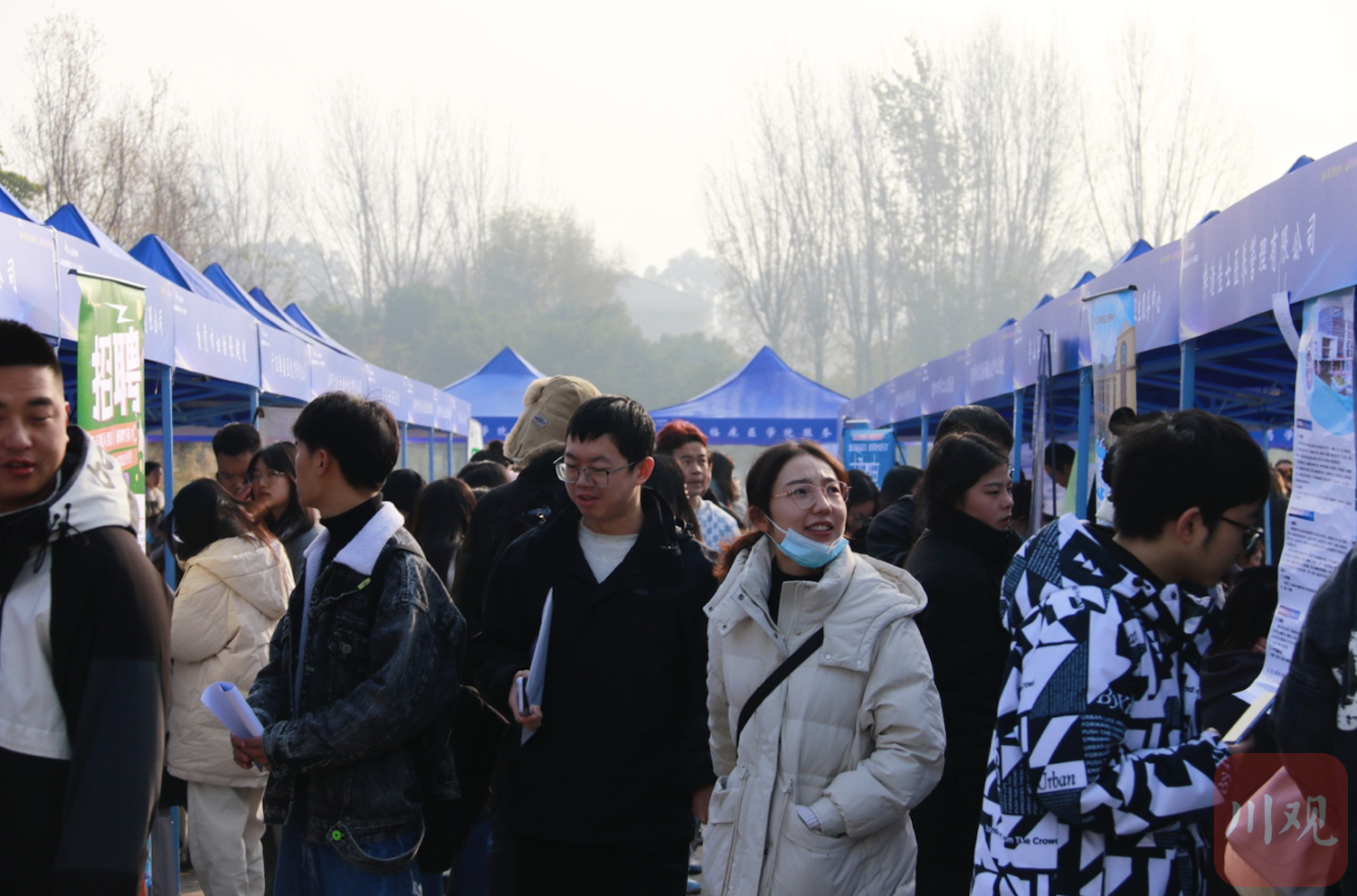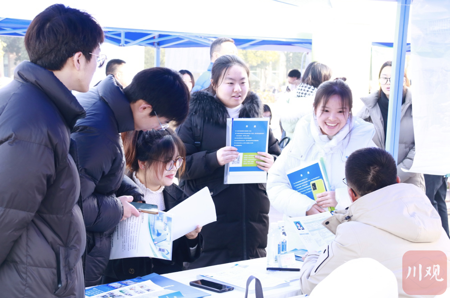 截至当天12时,到场参加招聘会的医疗卫生健康专业毕业生达2863名,投递简历人数2016人,初步达成就业意向833人,川渝两地112家医卫健康企事业用人单位的招聘展台前人流涌动。