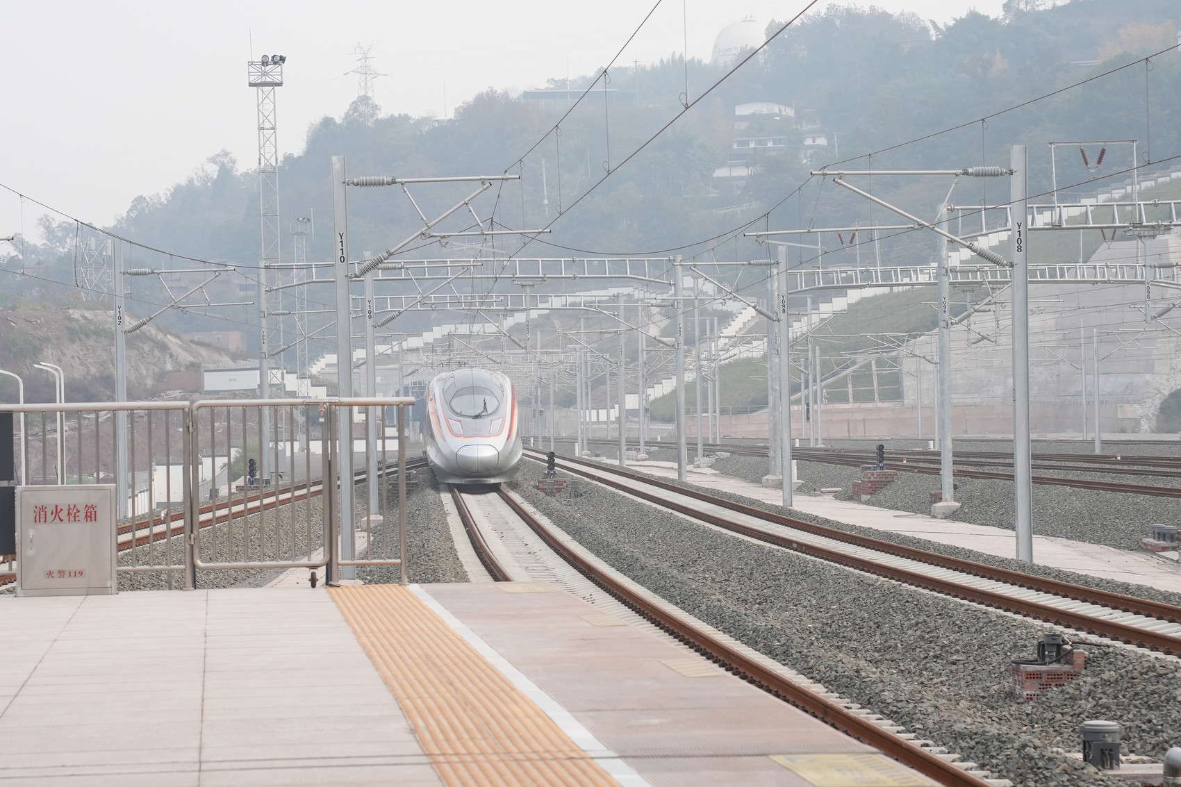 12月26日,成自宜高铁首发列车驶出宜宾站。 罗顺 摄