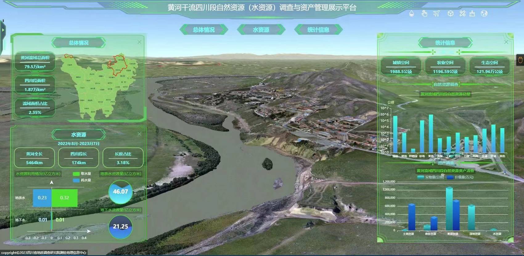 省地调院所属测绘中心开展了基于实景三维的黄河干流自然资源(水资源)调查与资产管理试点工作。图为管理展示平台