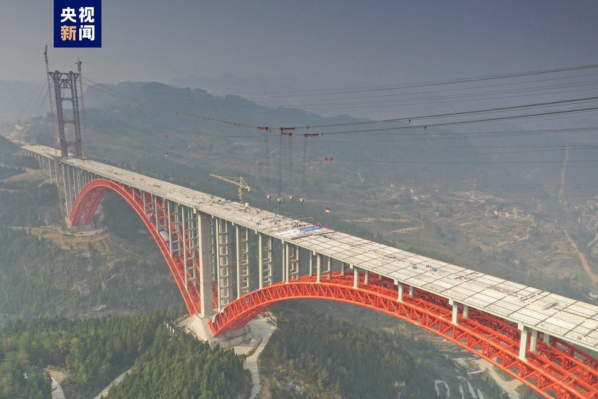 12月27日,伴随着最后一块桥面板成功嵌入,中国又一个“世界第一”超级桥梁渝湘复线高速公路双堡特大桥顺利贯通。