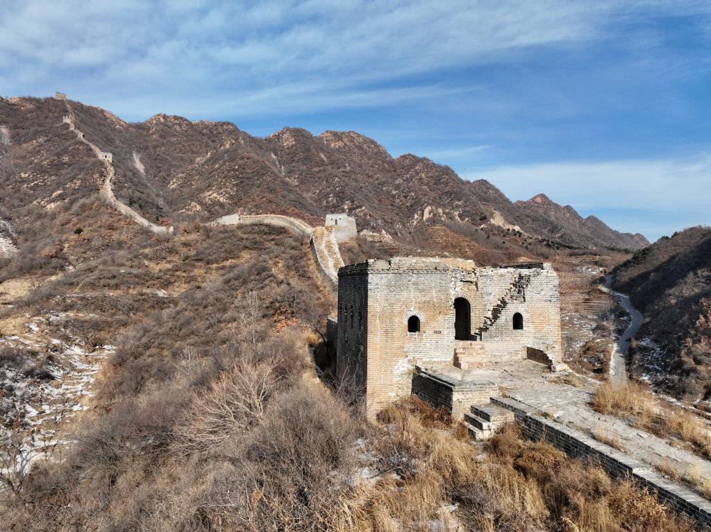 近日,位于河北省迁西县的古长城与连绵山岭、皑皑积雪交相映衬,勾勒出雄浑厚重的冬日盛景。