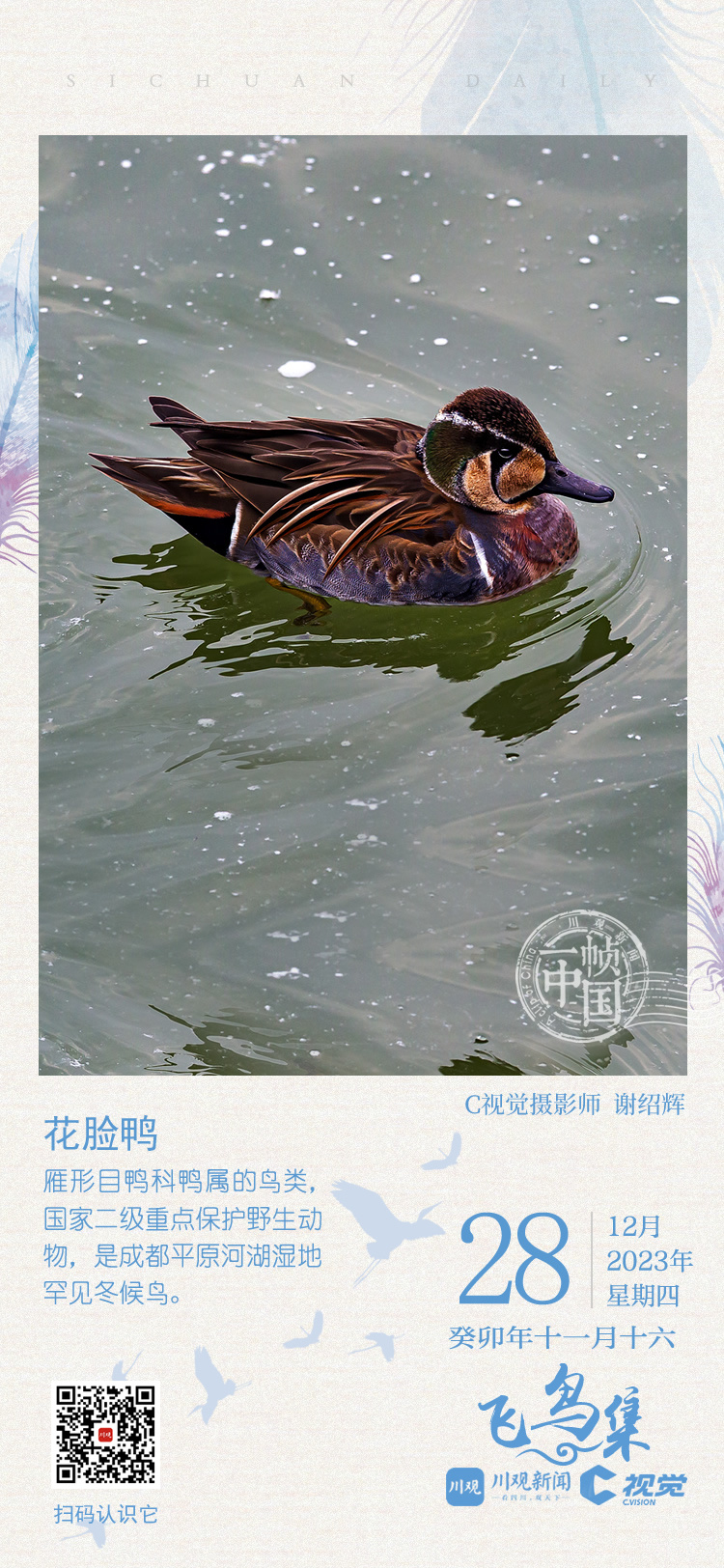 C视觉、川观新闻“一帧中国”专栏联合成都观鸟会发起“‘飞鸟集’影像全球招募计划”,征集冬候鸟在四川境内越冬的精彩影像图片,诚邀广大摄影爱好者投稿,展示你镜头记录飞羽之美,定格四川冬候鸟的美丽瞬间。