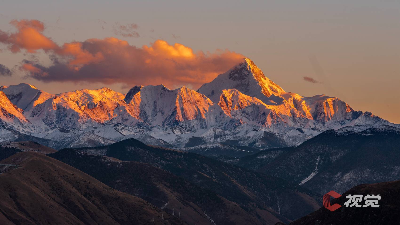 在甘孜州新都桥守望贡嘎群峰“日照金山”,12月10日拍摄。