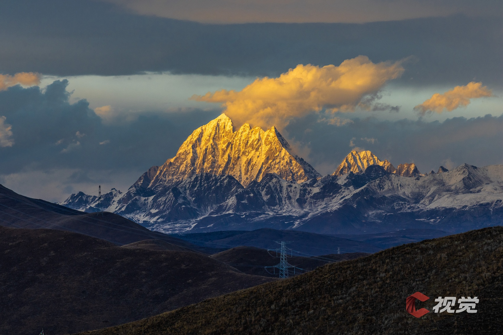 在甘孜州新都桥眺望雅拉雪山“日照金山”,11月13日拍摄。